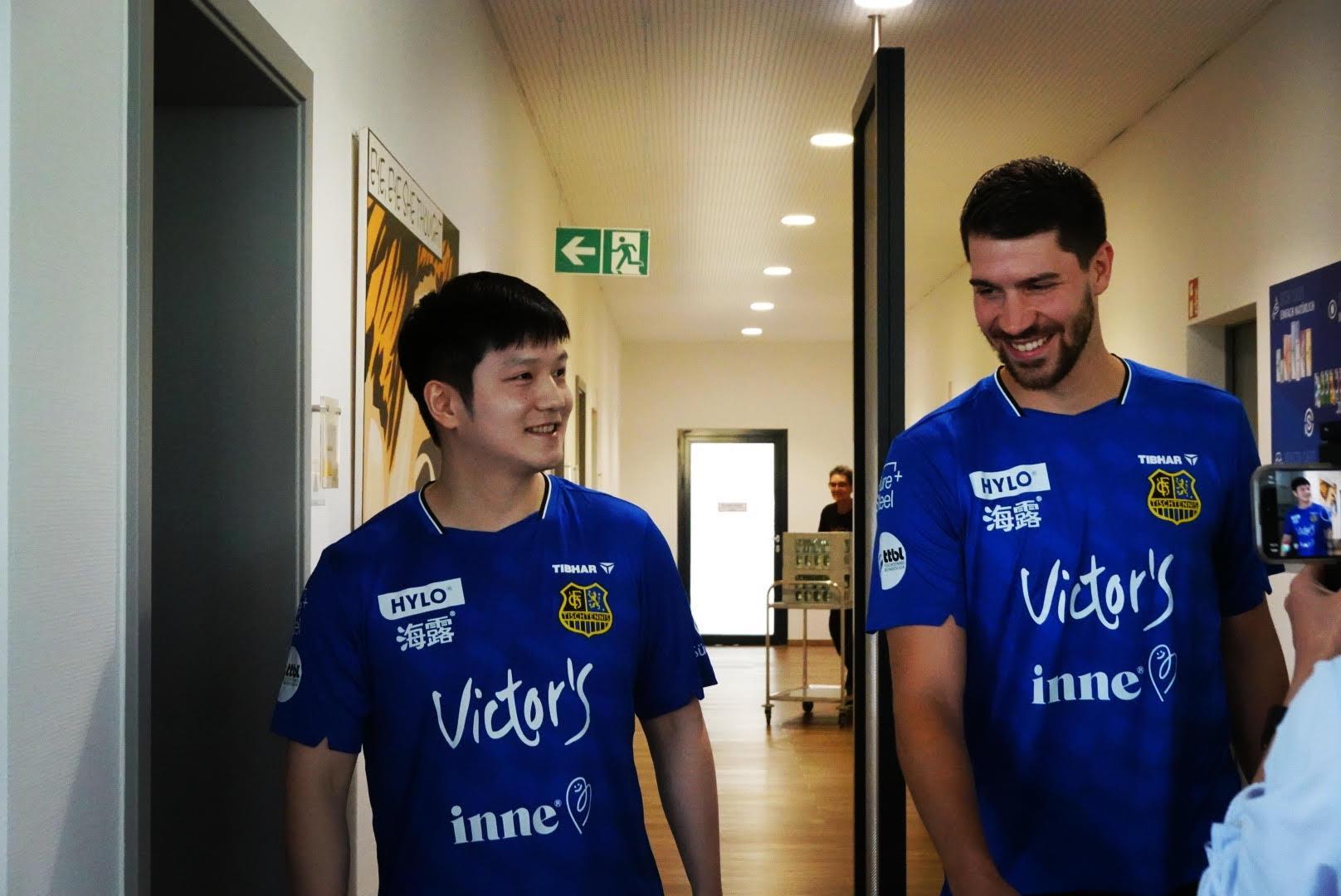 樊振东与萨尔布吕肯俱乐部队长弗朗西斯卡 ©Tracy